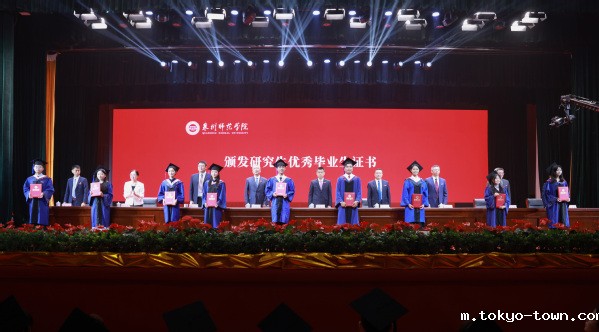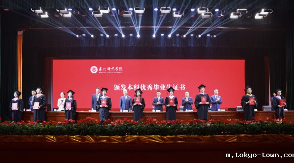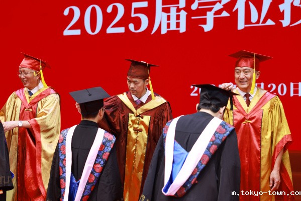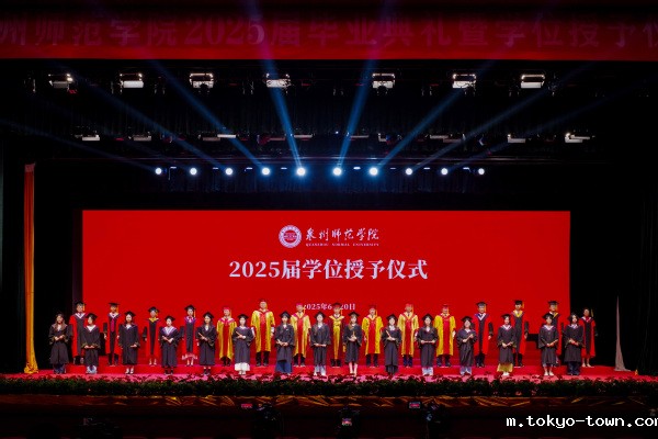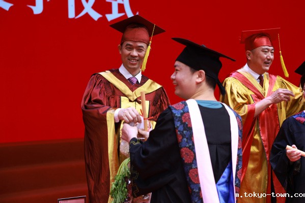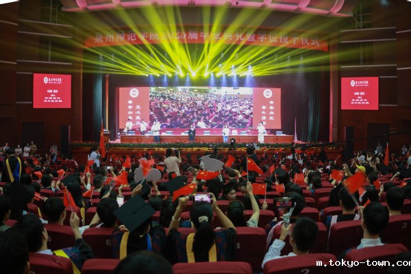 毕业典礼在全体师生合唱《歌唱祖国》中落下帷幕。随后,学校举行学位授予仪式,校领导和二级学院负责人为获得硕士学位和学士学位的毕业生一一扶正流苏。