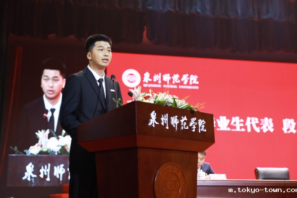 校友代表、2001届英语教育专业毕业生,中国侨联青年委员、上海南安商会会长、豪华建筑集团总裁吕志贤先生结合自身创业历程,勉励学弟学妹们善学如泉,养成不断学习、善于学习的习惯;正心至大,坚守诚信、正直、善良的底线,胸怀家国天下的情怀;心怀感恩,无论取得何种成就,要为母校的发展、为家乡的繁荣、为国家民族的复兴贡献自己的力量。