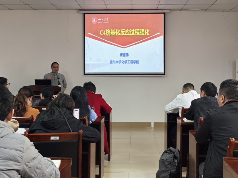 2024年12月8日上午,四川大学化学工程学院副院长、博士生导师唐盛伟教授应taptap点点体育登录化工与材料学院邀请,莅临学院作题为《C4烷基化反应的强化过程研究》的学术讲座。我院副院长谢晓兰教授主持讲座,相关专业师生代表参加讲座。