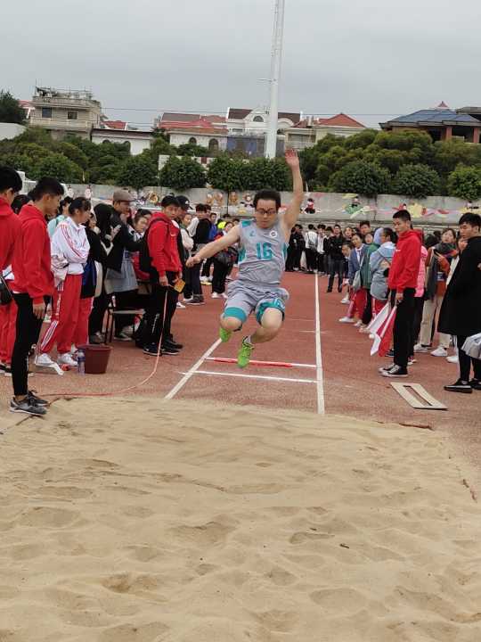 比赛过程中,洪钦赐严格遵守比赛规则,认真、严谨、一丝不苟的精神让人敬佩。起跑前紧绷的身躯,蕴含着无穷的能量;起跳时跨越的姿态,藏不住满满的自信。落地,正身,一气呵成。忽的,掌声和呼声同时响起,洪老师从容自若,淡定离开沙坑,迎接下一场比赛。