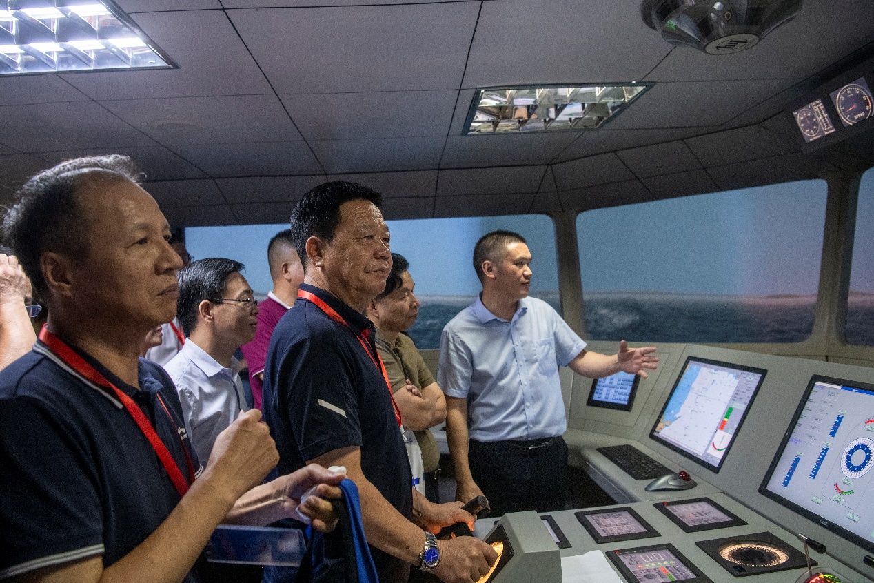 会议期间,院长俞文胜陪同与会人员参观考察了交通与航海学院水上训练中心、大型航海模拟器及动力车间等实验设备与设施。
