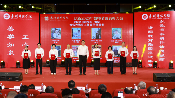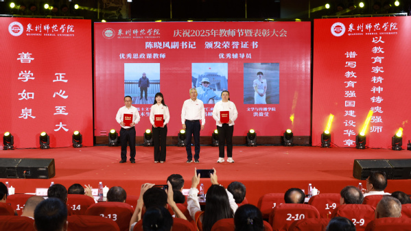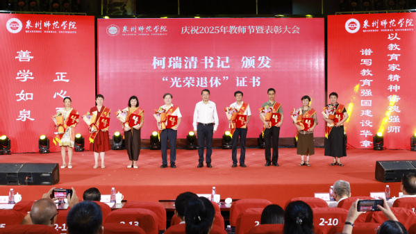 荣休教职工代表、物理与信息工程学院原院长杨惠山教授,从事教育工作满三十年教师代表、体育学院陈霞明教授,新教师代表、泉州文化遗产研究院沈秀梅博士,教师代表、闽江学者特聘教授、光电工程系苏子生教授等分别发言,表示将大力弘扬教育家精神,以强烈的职业光荣感、历史使命感和社会责任感,践行为党育人、为国育才初心使命,为建设特色鲜明的一流应用研究型大学作贡献。(党政办、宣传部、教师工作部)