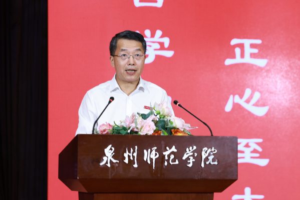 柯瑞清指出,教育家精神富含深邃的教育哲理、文化意蕴和实践智慧,不仅为教师队伍建设提供实践标准,更为师德师风建设明确价值坐标,为新时代高水平教师队伍建设指明发展方向。柯瑞清强调,全校教师和教育工作者要大力弘扬教育家精神,深入贯彻落实习近平总书记给全国特岗教师代表重要回信精神,把立德树人根本任务融入教育教学全过程,紧紧围绕办学目标任务,加快建设特色鲜明的一流应用研究型大学,为服务教育强国、教育强省建设贡献智慧和力量。一要牢记使命,坚定教育报国理想信念。要胸怀“国之大者”,牢牢把握时代发展脉搏和教育变革趋势,增强新时代新征程上的历史主动,在应变局、开新局中将个人奋斗融入国家和民族事业之中,以实际行动践行教育报国的初心使命。二要铸魂育人,做学生为学、为事、为人的大先生。启智润心,既要做“经师”,也要做“人师”,在“启智”与“润心”的统一中培育全面发展的时代新人;言为士则,既要做“学问之师”,更要做“品行之师”,以高尚人格引领学生成长。三要挺膺担当,建设高素质专业化教师队伍。“勤学善思”涵养育人本领,深学理论明方向、精研业务强本领,主动应对教育数智化浪潮,自觉更新教育理念、提升教学能力;以“笃行修身”厚植师德根基,铸牢师魂守初心,成为学生“想得起、找得到、信得过”的良师益友;以“求实敬业”彰显使命担当,扎实开展教育教学,奋力攻坚科研难题,为培养担当民族复兴大任的时代新人、推动经济社会发展作出泉师贡献。