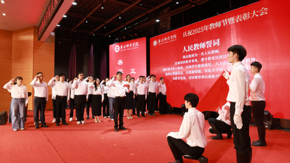 9月10日下午,学校在特教大楼第一学术报告厅举行庆祝2025年教师节暨表彰大会,表彰一年来在学校建设发展中作出突出贡献的各级各类先进工作者,举办退休教职工荣休仪式、从事教育工作满三十年表彰仪式、新教师入职仪式。在家校领导,机关各部门负责人、各二级学院党政负责人、部分在职教职工代表、各类表彰对象、新教师代表、退休教职工代表和从事教育工作满三十年教职工代表、学生代表等参加。大会由副校长黄江昆主持。
