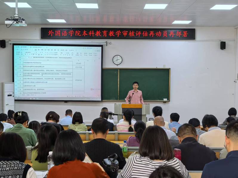 为扎实推进学院本科教育教学审核评估工作,3月27日下午,外国语学院在俊秀外文楼112室召开本科教育教学审核评估再动员再部署再推进工作会,全院教职工参加。