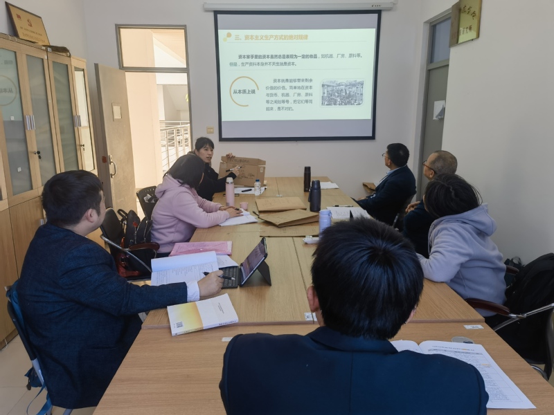 本次集体备课会以第10专题“解读资本主义经济制度”为核心内容,由吴雪君博士担任主讲。为破解理论教学中抽象概念难以具象化、学生参与度不足的痛点,吴老师创新采用“情景代入教学法”,以贯穿全程的典型案例为线索,通过创设资本主义生产流程的模拟情境,引导学生“代入”不同角色,在分析劳动时间分配、剩余价值计算、资本积累逻辑的过程中,自主推导出“必要劳动与剩余劳动”“剩余价值率”“资本积累的实质”等核心知识点,激发学生从被动听讲转向主动探究。教研部党员教师一致认为,这种“一案到底、层层递进”的教学模式,既实现了理论逻辑的连贯性,又通过情境互动强化了学生的价值体认。与会教师还就案例细节的优化展开热烈讨论,共同地对一些情景细节提出了修改建议。