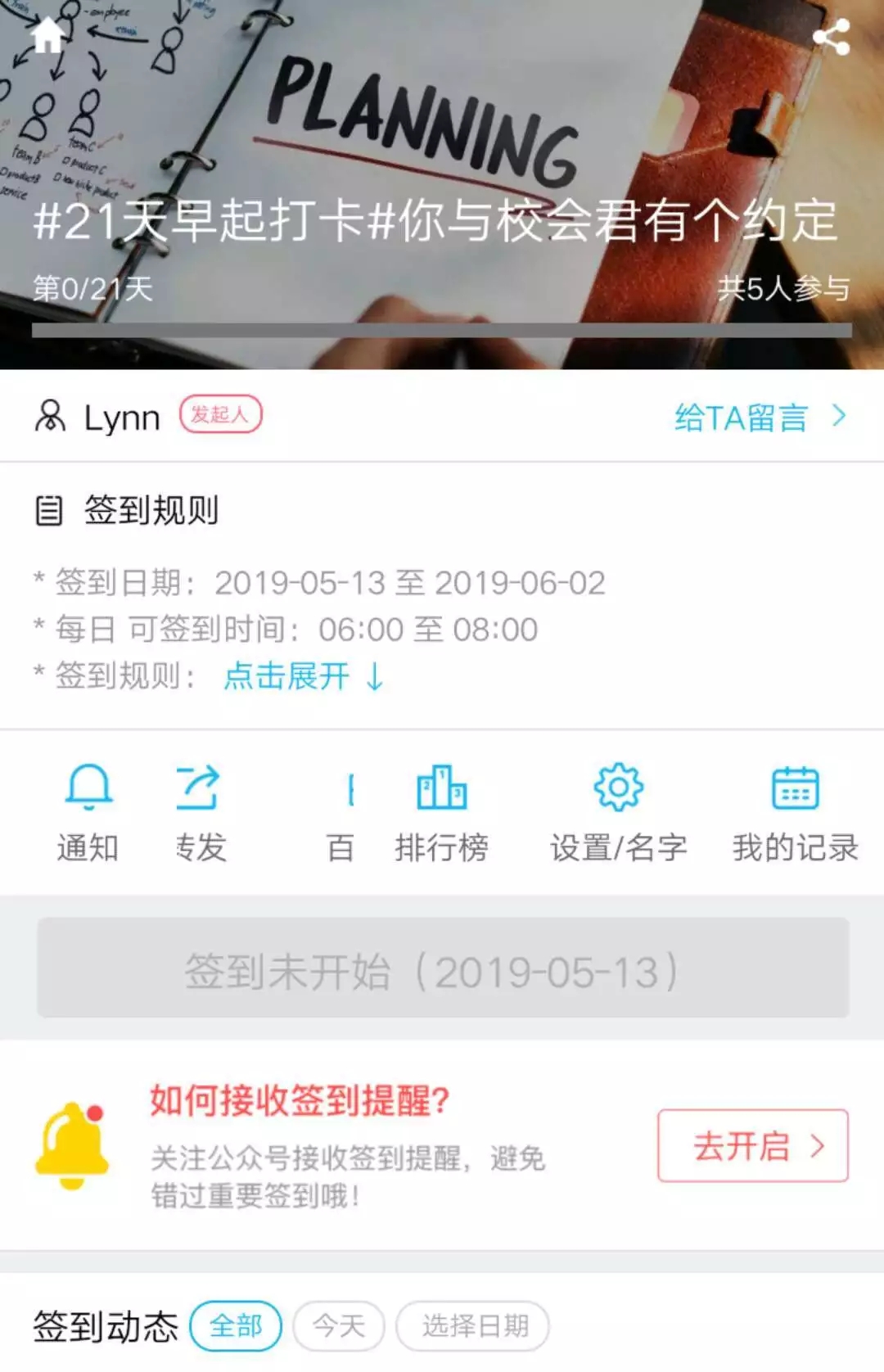点击“参与签到”进行报名