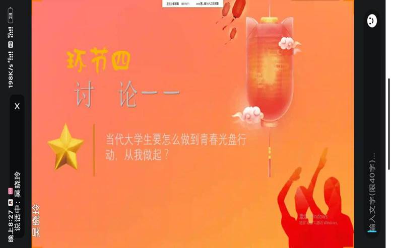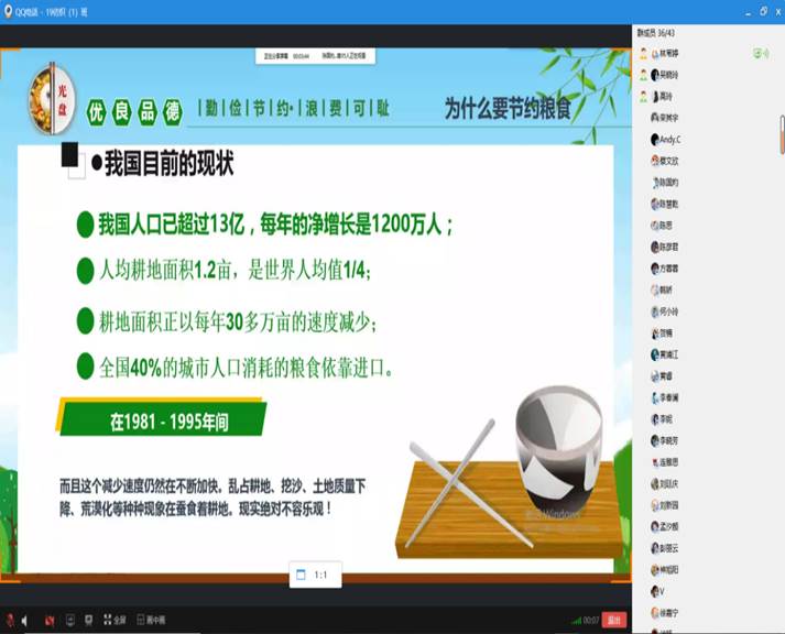 96日晚,我院组织学生开展“青春光盘行动,从我做起”线上主题班团日活动,各班级以线上方式参与此次活动。
