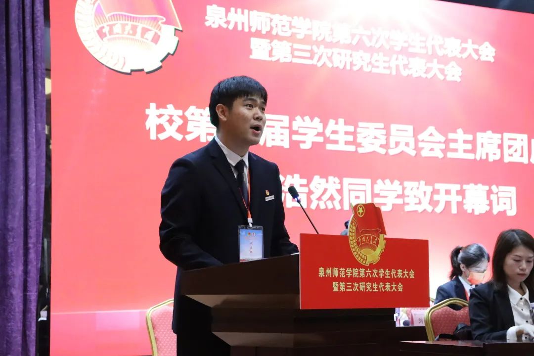 吴浩然同学代表第五届学生委员会作题为《矢志不渝跟党走 笃行建功新时代 “以踔厉奋发之姿与扎实斐然之绩唱响青春之歌”》的工作报告。