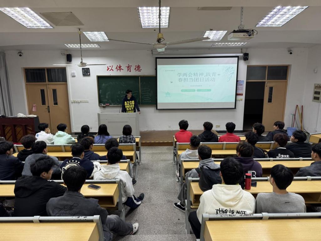以强健体魄筑牢民族根基,以体育精神点亮青春之光。活动尾声,全体学生共同朗读体育学院院训:技能立院,人才兴院,科研强院。在体育学院团委的带领下,以铿锵誓言回应时代召唤。体育学子既是全民健康的推动者,也是体育精神的传播者。同学们要将两会精神转化为学习生活的动力,发扬体育拼搏精神,让青春在体育强国建设中绽放光彩。