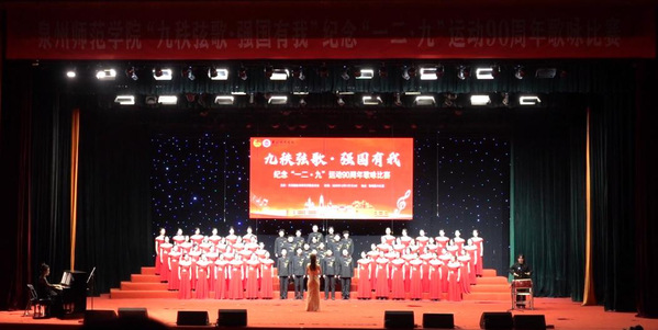 弦歌不辍忆峥嵘,壮志豪情向未来。12月11日下午3点,我校“九秩弦歌·强国有我”纪念“一二·九”运动90周年歌咏比赛在陈祖昌大礼堂隆重举行。本次歌咏比赛旨在通过音乐艺术形式,缅怀“一二·九”运动中爱国青年的英勇事迹,传承红色基因,激发当代大学生的爱国热情与时代担当。我院合唱团凭借精湛的演唱与深厚的情感表达,在全校十五支参赛队伍中脱颖而出,荣获特等奖的优异成绩。
