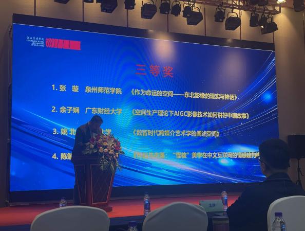 在我院王奋飞教授的悉心指导下,张璇同学的论文《作为命运的空间——东北影像的现实与神话》以较高的质量水准,在名校生云集的征文中脱颖而出,获邀在论坛上正式宣读并最终获得三等奖,排名第一,展示了我院广电研究生学子的学术风采。