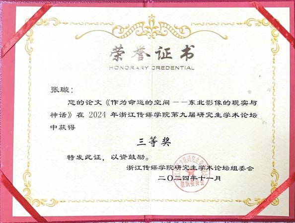 近日,我院2022级广电专业研究生张璇的论文在“浙江传媒学院第九届研究生学术论坛”获奖。