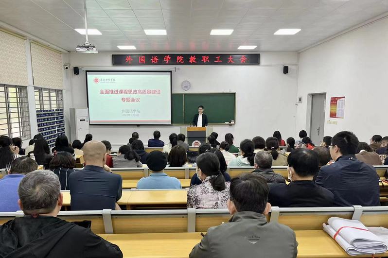 202346日下午,外国语学院在俊秀外文楼112召开了全面推进课程思政高质量建设专题会议。会议由教学副院长主持,全体教职员工参加。