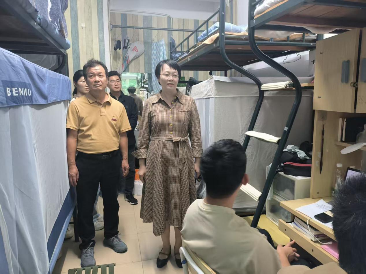 走访期间,吴丽双与同学们亲切交流,细致询问大家的学习生活、运动会参与及思想动态,并查看宿舍设施与环境卫生,叮嘱同学们注意用电安全、保持规律作息,鼓励大家积极参与校园活动,提升综合素养。