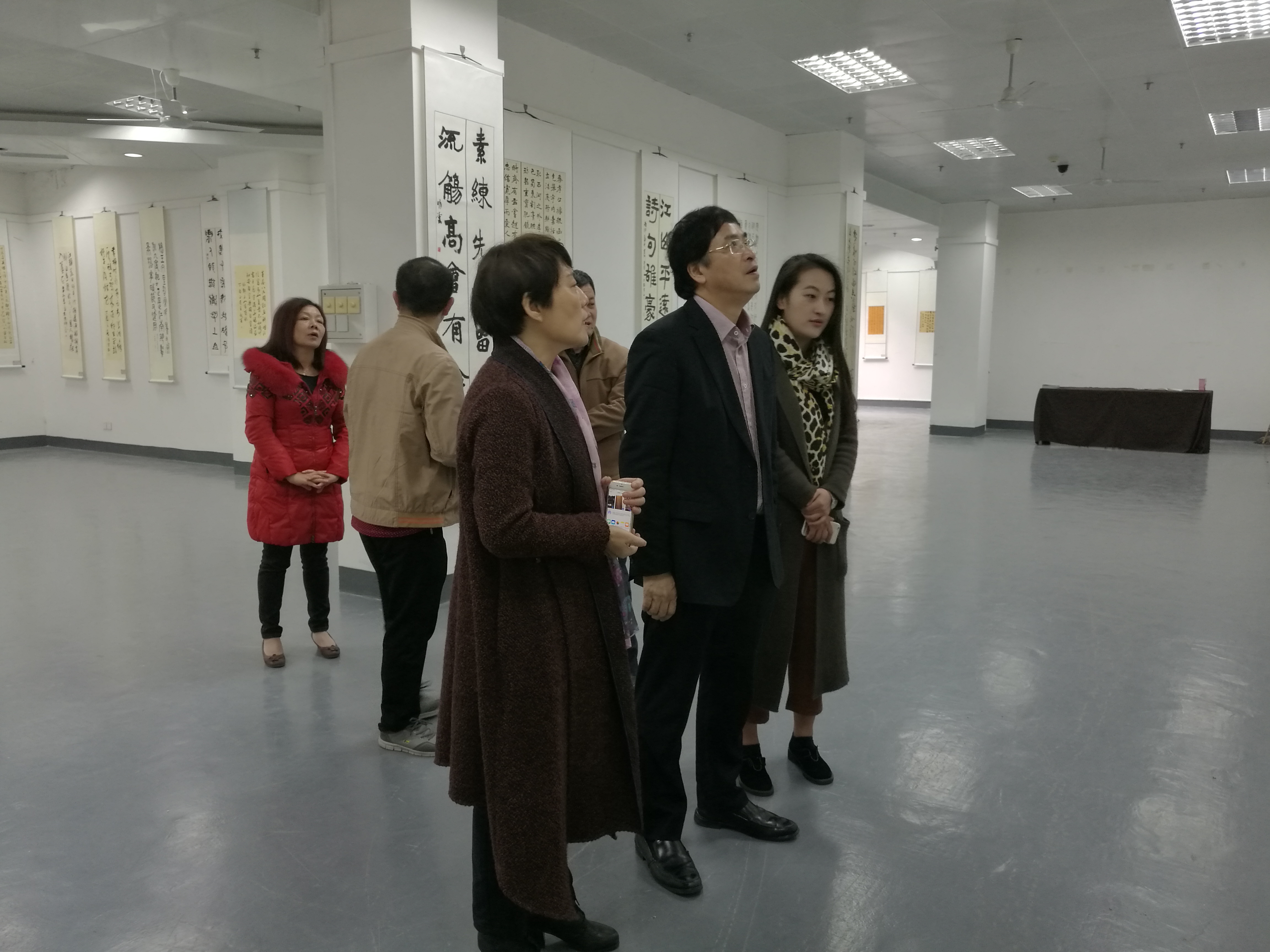 2017年2月21日上午,我院挂联领导校纪委邱银富书记和校监察审计室陈少旭主任在谢英院长陪同下,参观了2015、2016级艺术硕士书法方向专业学位研究生为迎接艺术硕士点评估举办的迎春书法展。