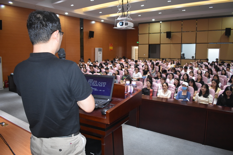 随后,陈博士通过分享自撰的两篇小文章和自己任教的小片段告诉我们,教师是天底下最阳光的职业,在言传身教中渐染、熏陶学生的心灵,因此必须加强自身的学识、道德修养,学为人师,行为世范。