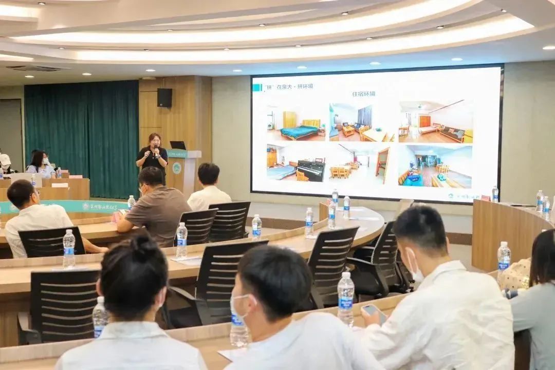 随后,泉州职业技术大学人事处赖小梅老师向同学们介绍学校办公环境、教学环境、生活环境,详细介绍学校教师薪资待遇与福利、晋江人才政策等情况。