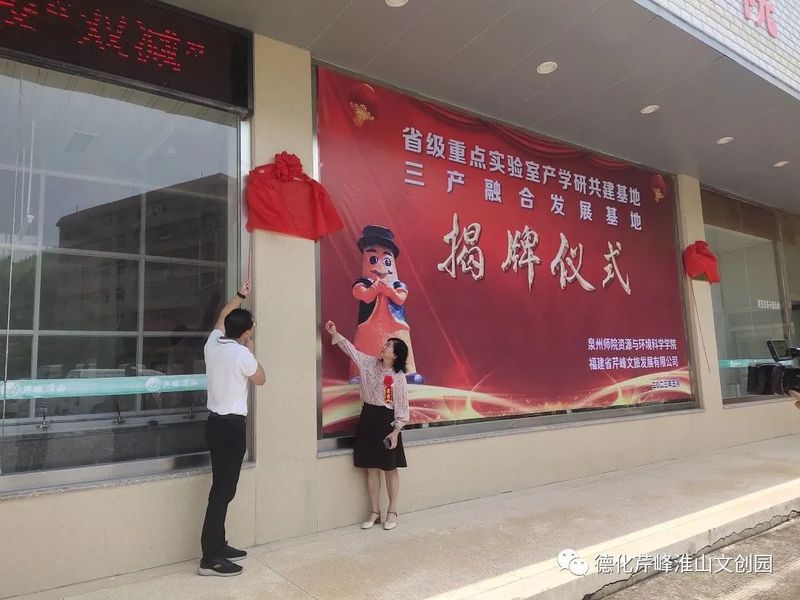 5月26日,资环学院与福建省芹峰文旅发展有限公司在德化县芹峰淮山文创园共同举行“产学研共建基地”“三产融合发展基地”签约仪式。龙浔镇党委书记陈国金、德化县科协主席赖佳忠、福建省芹峰文旅发展有限公司董事长林文映、英山珍贵淮山农民合作社总经理李福龙、资环学院院长李子蓉、党委书记江文元、教师代表等参加活动。李子蓉院长与林文映董事长共同为“产学研共建基地”“三产融合发展基地”揭牌,并代表双方签署协议。
